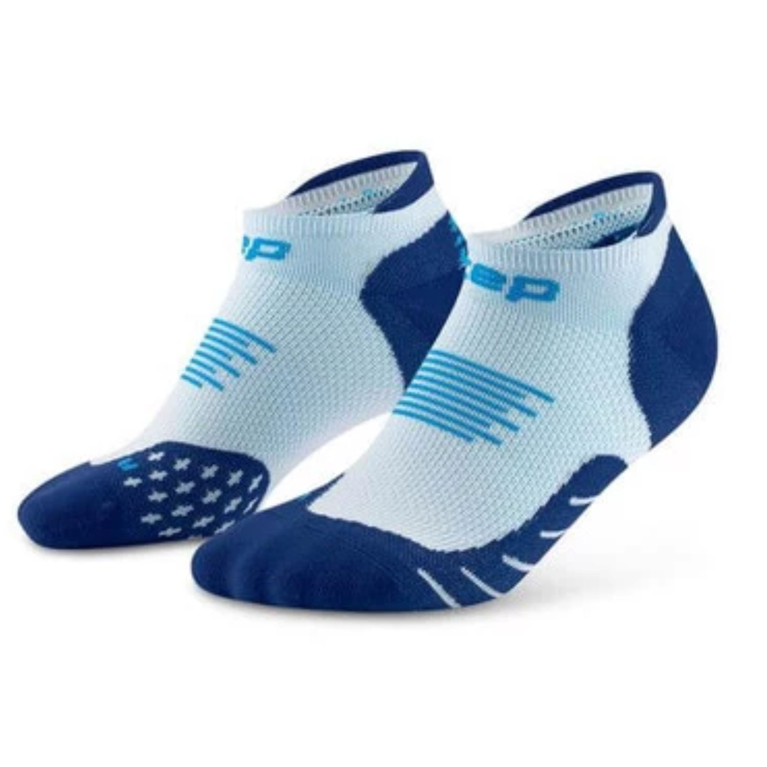 Skarpety kompresyjne męskie stopki no show biało-niebieskie L IV - model CEP CORE RUN 5.0